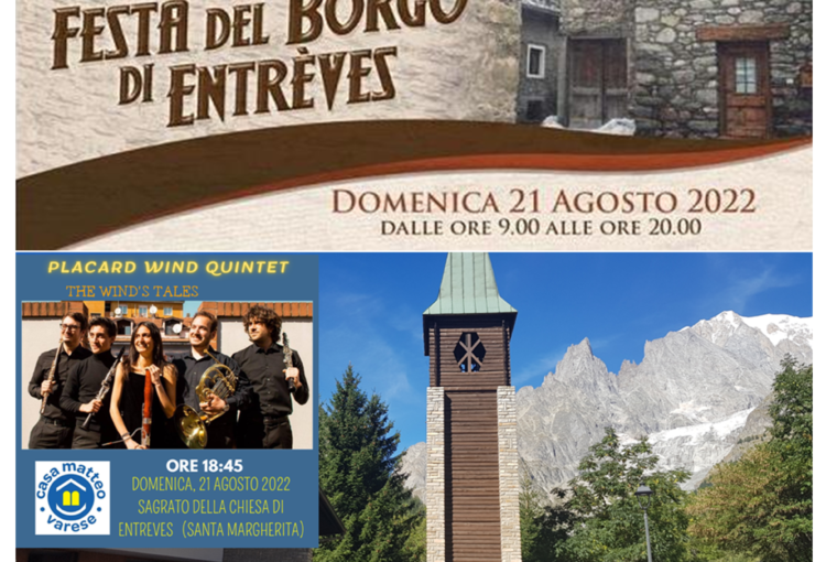 Festa del borgo di Entreves Courmayeur. Mostra delle foto di Matteo e concerto Placard Wind Quintet