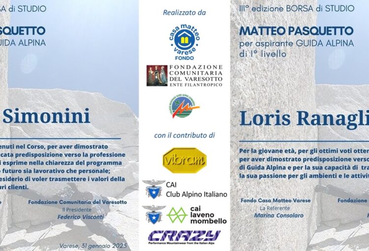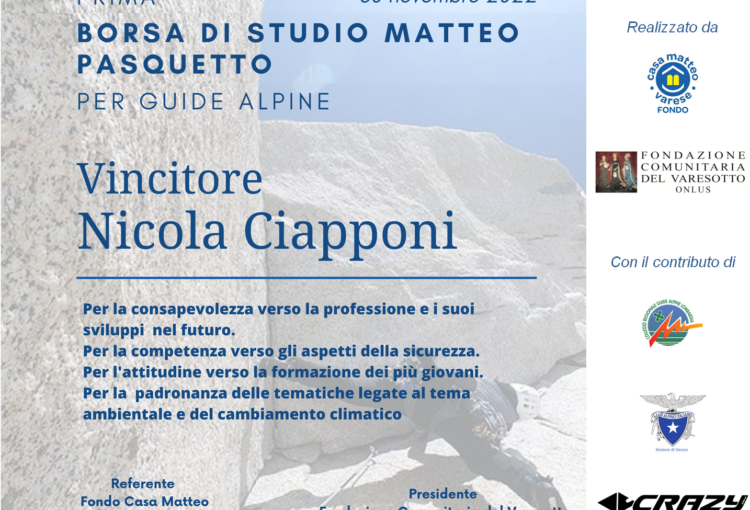 4° edizione della Borsa di Studio Matteo Pasquetto per Aspiranti Guide Alpine