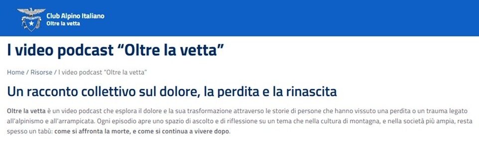 È ufficialmente nato ‘Oltre la Vetta’, un progetto che si è fatto sito, ricco di materiali da consultare e di collaborazioni cui attingere, tra cui quella con la Federazione ‘Psicologi per i popoli’, una rete di professionisti oggi a disposizione dei soci CAI nel malaugurato caso di un evento tragico.