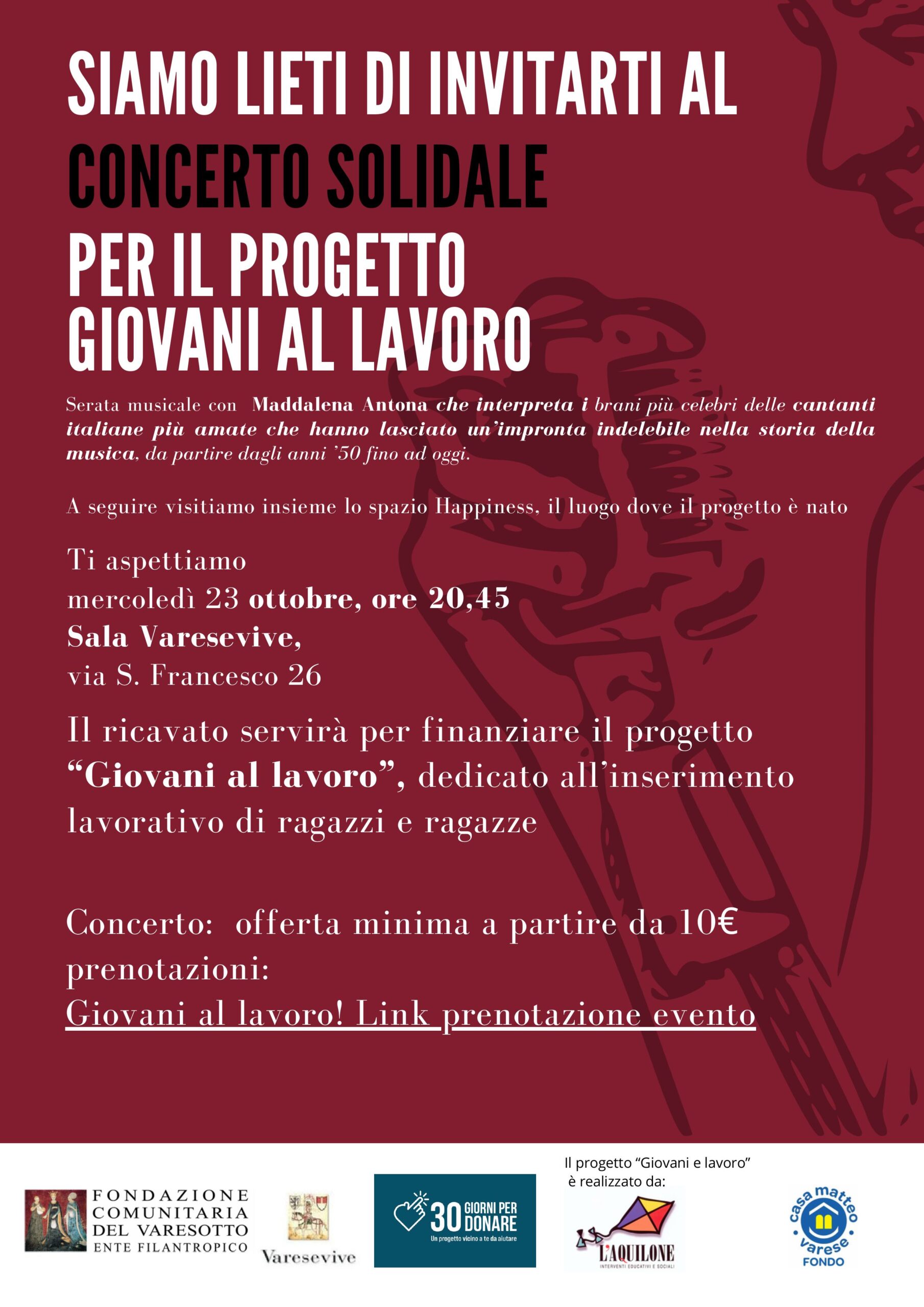 L’incasso della serata, infatti, sarà raddoppiato da Fondazione Comunitaria del Varesotto nell’ambito del ‘mese del dono’.