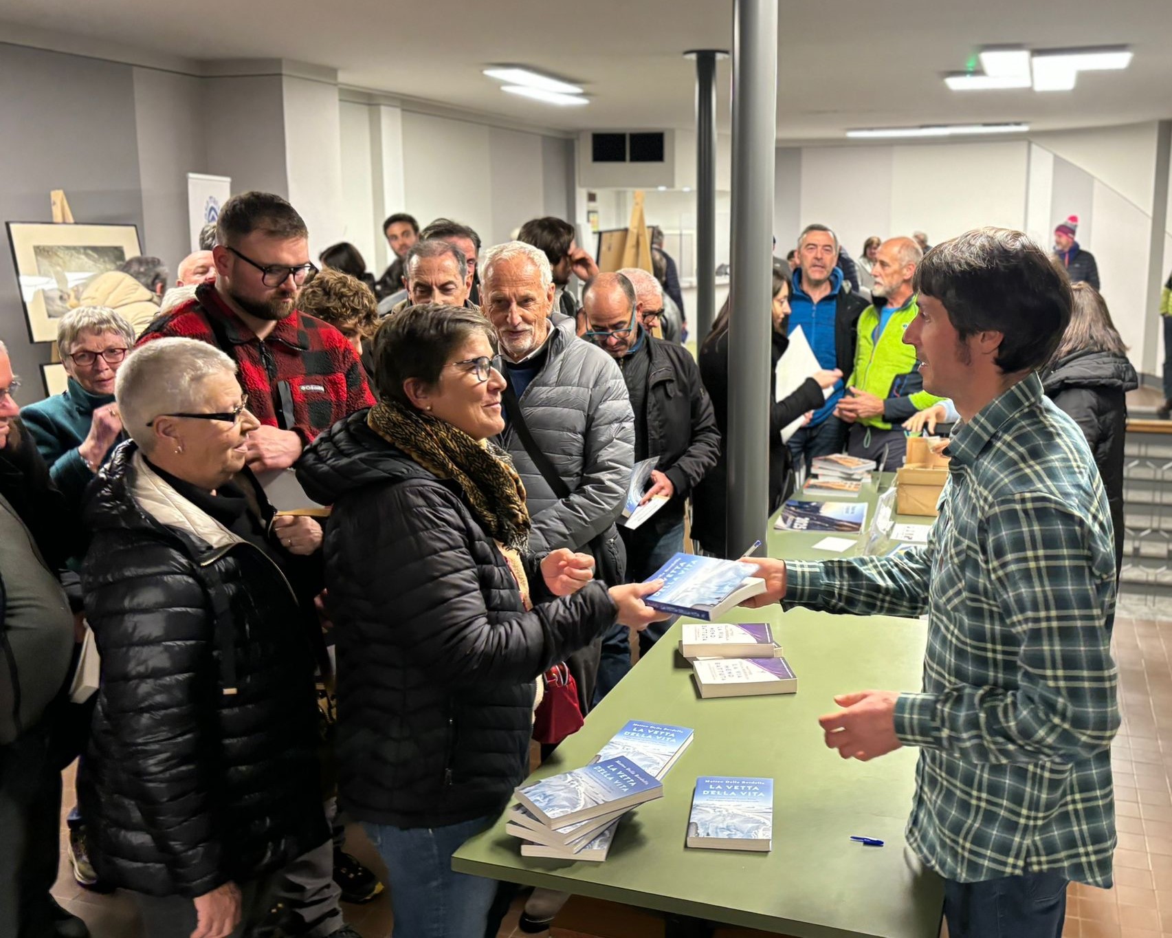 Oltre all’incontro con tanti amici, la serata ci ha regalato anche quello con Bisaccia, istruttore del CAI che ha avuto il nostro Matteo come suo allievo che e ci ha raccontato aneddoti relativi a quello che ha chiamato un talento puro per la montagna e per il mestiere della Guida. E poi quello con lo zio di un compagno di università … e poi con le sue prof di italiano e matematica del Liceo …