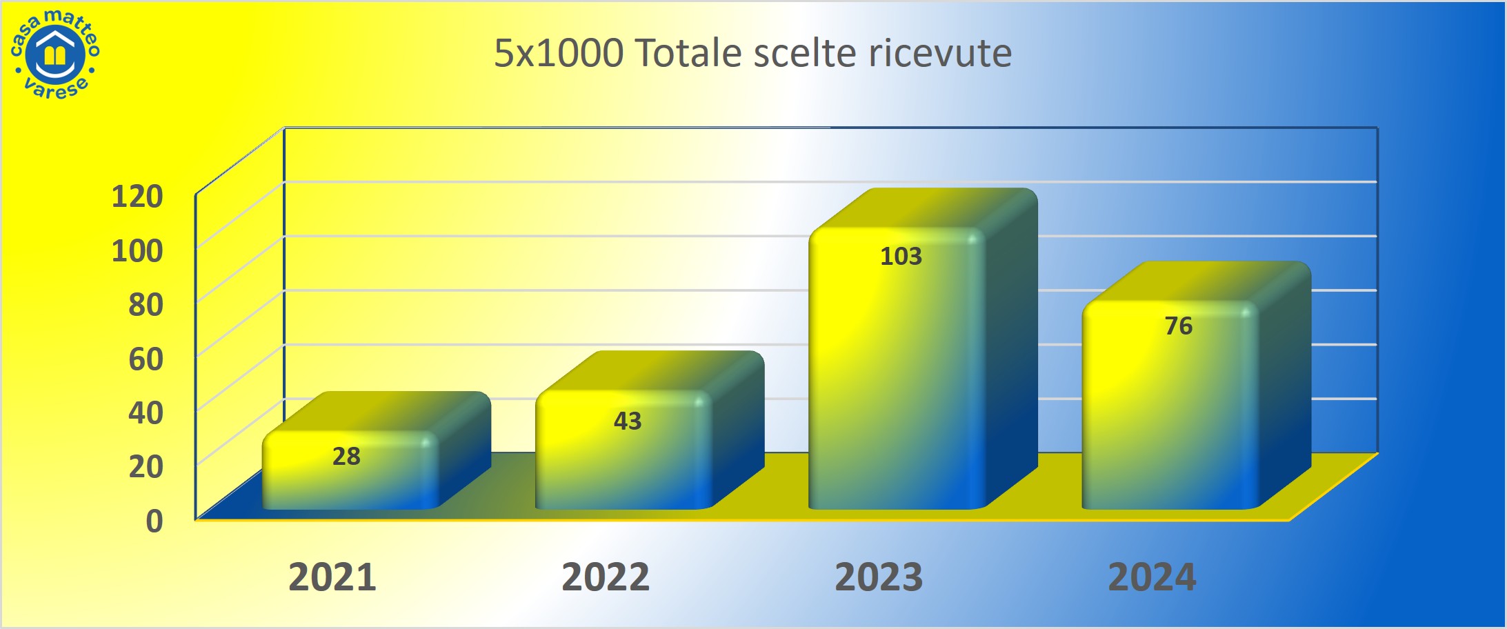 Infine, una flessione nel 2024 ci porta a scendere a 76 preferenze con una cifra, comunque, di tutto rispetto: 2.300 € di cui far tesoro per spingere anche sul progetto ‘Giovani al Lavoro’.