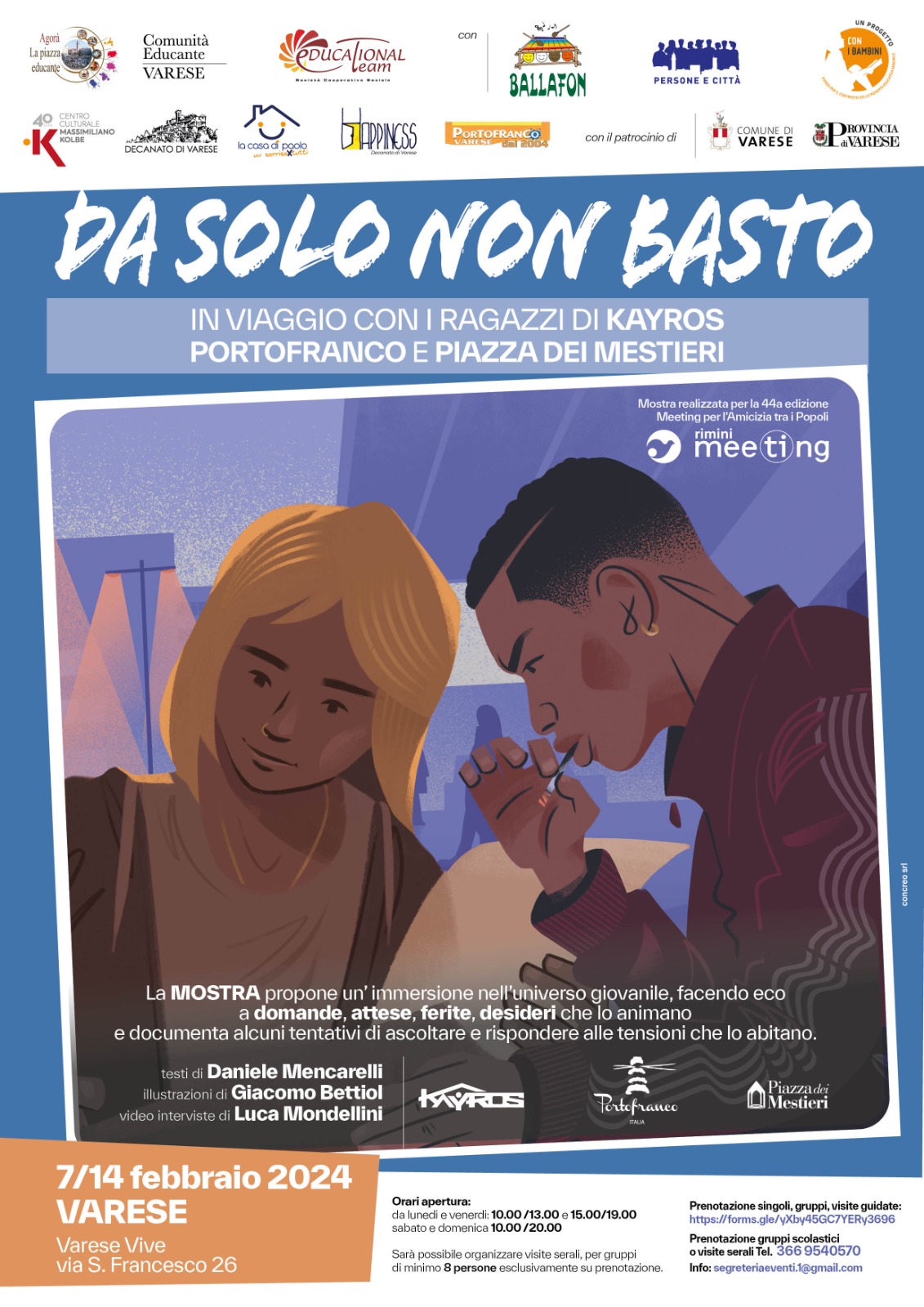 Mentre, infatti scorre la routine dei pomeriggi, affollati di ragazzi nei locali di via San Francesco, in città, grazie ad una rete di Enti ed Associazioni che l’hanno proposta, è arrivata la mostra ‘Da solo non basto’ che su testi di Daniele Mencarelli racconta esperienze di vita vissuta da adolescenti che hanno intercettato nel loro percorso tre Istituzioni del Privato Sociale: Porto Franco, La piazza dei Mestieri e Kayros, la Comunità di don Claudio Burgio che è già venuto a trovarci in Happiness più di una volta con qualcuno dei ‘suoi’ ragazzi. Qui qualche informazione sulla mostra.