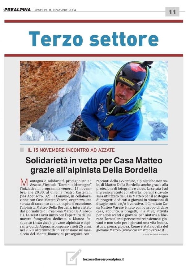 Uomini e montagne – serata evento ad Azzate con Matteo della Bordella.